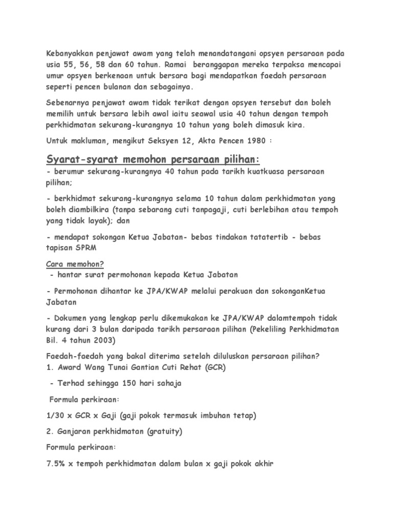 Persaraan Faedah Persaraan Dan Faedah 2 Pdf Persaraan Gemulah Pegawai Pada 1 1 2012 Sila Lihat from demo.pdfslide.tips We did not find results for: Contoh surat mohon bersara pilihan. Check spelling or type a new query. Maybe you would like to learn more about one of these?